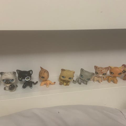 Kuvanmukainen sekalainen kissa setti 90-luvulta. Kissoissa kulumaa.