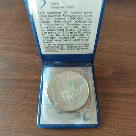 Suomi 25 markkaa juhlaraha hopea kolikkoerä. Erässä useita Suomen 25 markan juhlarahoja, jokainen omassa muovikotelossaan ja esittelytekstillä. Rahoissa eri aiheet, muun muassa Turun 750-vuotisjuhla ja hiihdon maailmanmestaruuskilpailut Lahdessa. Kolikot ovat hopeaa, halkaisija noin 37 mm ja paino noin 26,3 g kappaleelta (tiedot myntin esittelytekstistä). Sopii kokoelmakäyttöön tai numismatiikasta kiinnostuneelle.