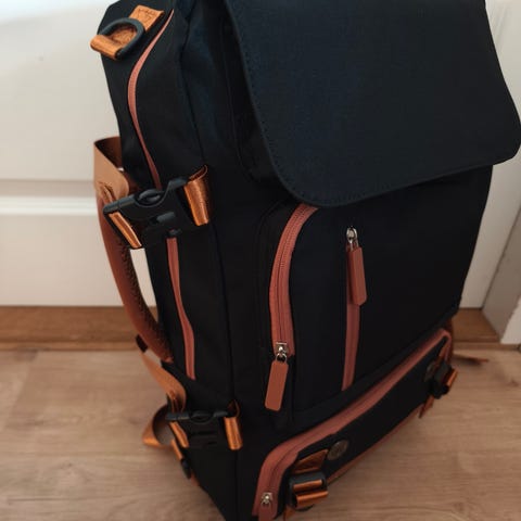 Kookas sisätila, pehmustettu 17.3" läppäritasku. Useita eri taskuja, myös erillinen kenkätasku. Hyvä ja hengittävä selkäosan materiaali.