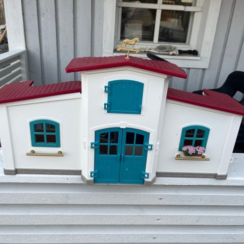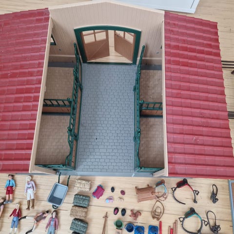 Myydään uudenveroisessa kunnossa oleva Schleich hevostalli. Tallissa on useita karsinoita, yläkerta, portaat ja avattavat ovet. Mukana hevosfiguureja, ihmishahmoja ja erilaisia tallitarvikkeita, kuten aitaelementtejä, ruokinta- ja hoitovälineitä.