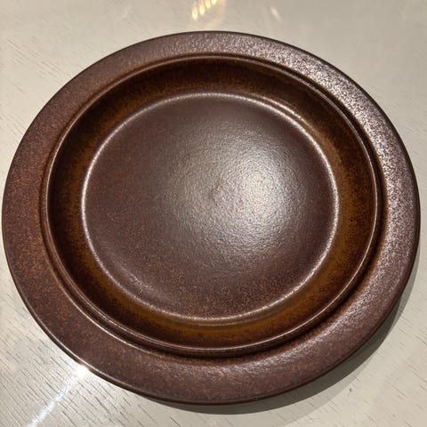 2kpl Arabia Ruska lautanen. Pyöreä keraaminen lautanen, jossa ruskea lasitus ja vaalea keskiosa. Sopii esimerkiksi kattaukseen ruokalautasena tai tarjoiluun osana Arabia Ruska -astiastoa.