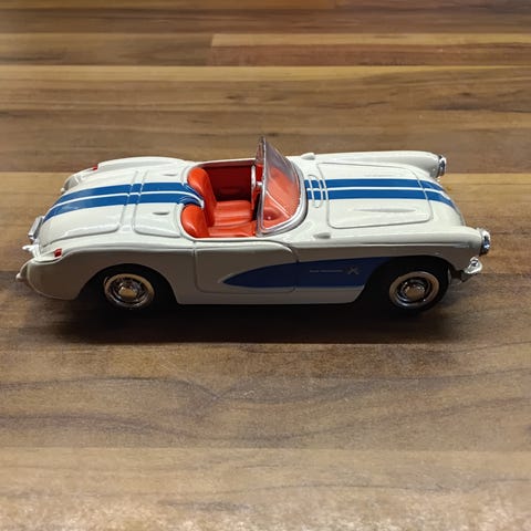 Ford Thunderbird, New Rayn valmistama. Kiina. 1/43. Tuulilasi rikki, etupuskurista puuttuu palanen, muuten hyvä kunto.