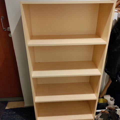 Kolmitasoinen hyllykkö, jossa vaaleat puuhyllyt ja valkoinen metallirunko. Sopii esimerkiksi kirjojen, koriste-esineiden tai pientavaroiden säilytykseen. Hylly voidaan sijoittaa seinää vasten lattialle tai tasolle. Neutraali väritys sopii monenlaiseen sisustukseen.