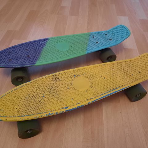Bing rullalaudalla. Rullalauta on vedettävä ja toimii. Bingin saa irti rullalaudasta.