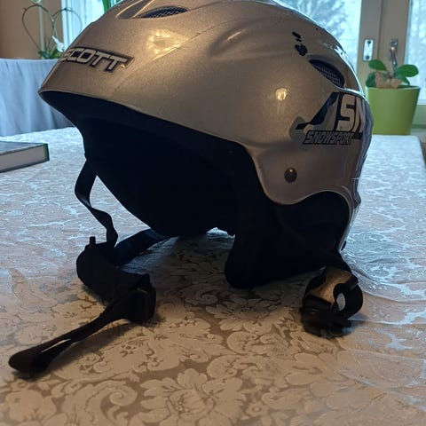 Pieneksi jäänyt kypärä ja lasit sisältyy hintaan.