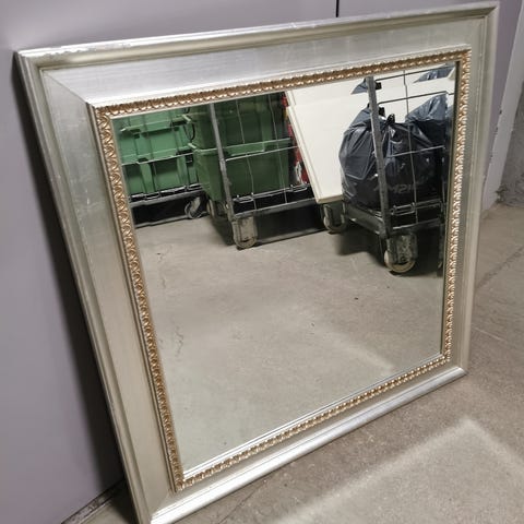 Kehystysliikkeen tekemä peili ihanilla leveillä ja vanhantyylisillä valkoisilla kehyksillä. Koko kehyksineen 57x57cm. Takana vaijeri ja mahdollisuus kiinnittää myös kulmista. Nouto Oulunkylästä