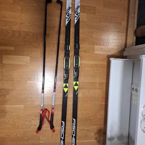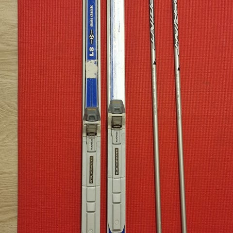 Sukset 135 cm ja sauvat 110 cm