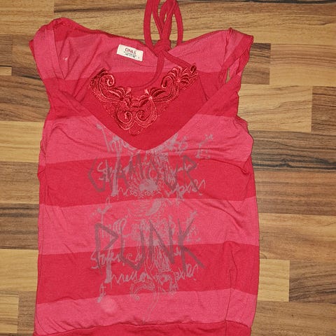 Hihaton. Mustalla pohjalla valkoisia palloja. Yläosassa pitsiä. Koko M Mittoja: kai-kai 60 cm olka-helma 64 cm