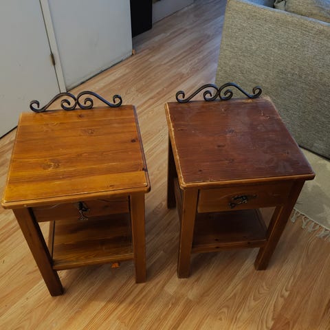 Myydään kaksi yöpöytää, hienossa kunnossa. Kaksi laatikkoa, pinnijalat. Pinta siisti, ei kolhuja viilussa.