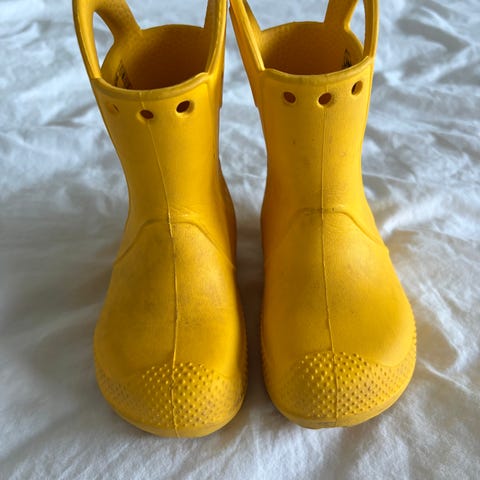 Hyväkuntoiset ja kevyet crocsin kumisaappaat koossa c7 eli noin 23. Hiukan tummentumia mutta yleisilmeeltään siistit.