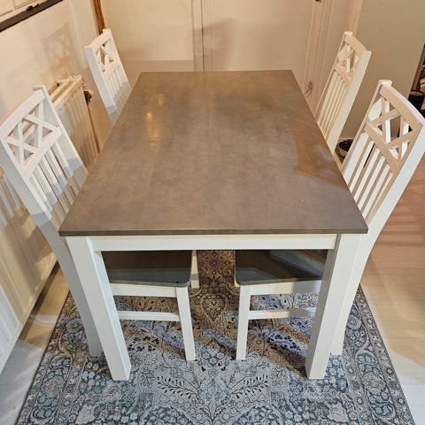 Myydään ruokapöytä ja neljä tuolia. Voidaan myydä myös erikseen.