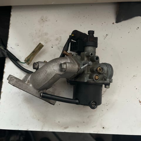 Speedfight 2 kiinni ollut säädettävä typpikaasu iskunvaimennin taakse. Pientä likaa/ruostetta näkyvissä mutta toimiva. "Kundo" merkkinen