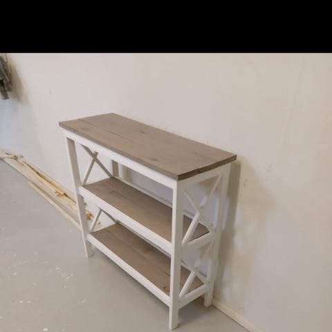 Valkoinen sivupöytä taso pyörillä.