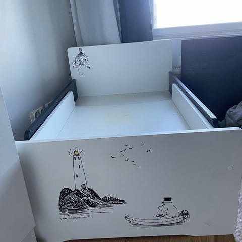 Ylivieskan puuseppien täyspuinen tukeva lastensänky. Mukana turvalaita (puoli vaihdettavissa) ja patja jatkopalalla. Patjoissa irroitettavat päälliset. Sängyssä on muutama pieni käytön jälki, joka ei vaikuta käyttöön. Allergiaystävällisestä perheestä. Valmis suoraan käyttöön. Purettavissa osiin. Ensisijaisesti nopea nouto.