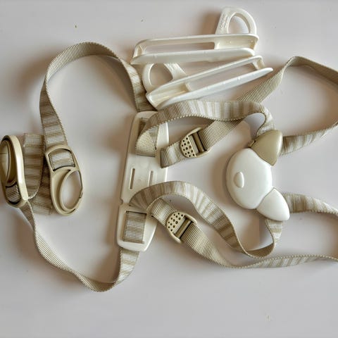 Stokke Tripp trapp turvavaljaat syöttötuoliin. Beigeraidalliset, säädettävät hihnat. Hyvä käytetty kunto, suoraan käytöstä, eikä ole nyt pesty. Ei mitään suurempaa tahraa, mutta tarkemmin tarkasteltuna jotain värieroa.