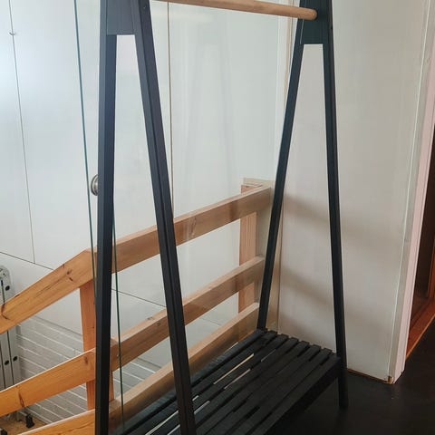 Ostan tukevan vaaterekin/ telineen metallia tai puuta.