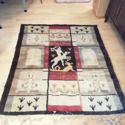 Tälle harvinaiselle ryijylle ei löydy nykyisestä kodistani paikkaa, joten joudun siitä haikeudella luopumaan.