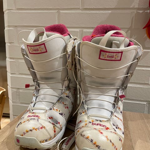 Burton Mint naisten lumilautakengät. Koko EU 40,5 / US 8,5 / UK 6,5 / 25,5 cm. Väri pääosin musta, yksityiskohtina sinisiä, punaisia ja vaaleita raitoja sekä siniset nauhat. Malli on suunniteltu naisille ja lumilautailuun. Tarjoten nilkkaa tukevan korkeavartisen rakenteen ja pehmustetun sisäosa. Pika kiinnityksellä, todella helpot ja laadukkaat kengät! Vain kerran käytetty!