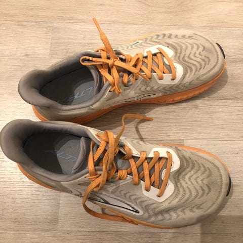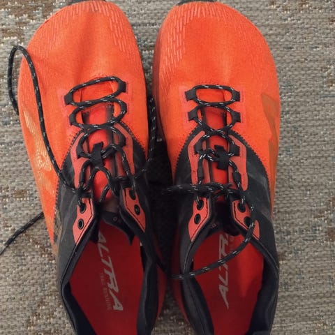 Altra Timp 5 hybridi-/polkujuoksukengät, miesten koko 44, hintapyyntö 55e. Kengillä juostu n. 80km, hyväkuntoiset, tilavat, jalanmuotoiset, hyvin vaimennetut kengät.