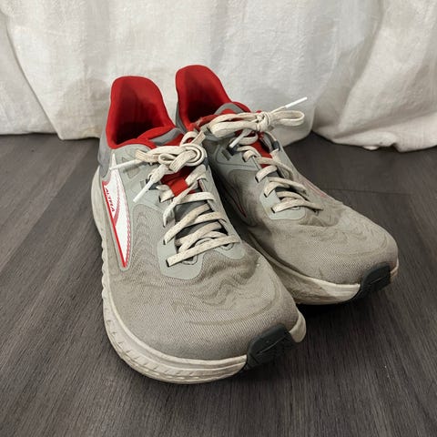 Altra Mont Blanc hybridi-/polkujuoksukengät, miesten koko 44, hintapyyntö 45e. Kengillä juostu n. 150km, pohjassa vain pientä kulumaa kannan ulkosyrjällä. Kevyet, tilavat, pitävät, hyvin vaimennetut ja jalanmuotoiset kengät.