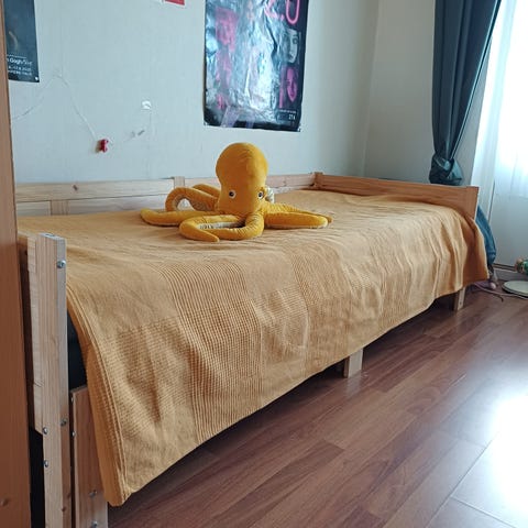 IKEA puinen sänky 140x200 cm, luonnonvärinen. Sängyn runko ja pääty ovat massiivipuuta. Ulkomitat noin 144 x 205 cm, päädyn korkeus noin 65 cm ja jalkapään korkeus noin 30 cm. Sopii 140 x 200 cm patjalle. Toimitetaan purettuna osiin, mukana puiset laidat ja tukipuut sängyn rungon kokoamista varten.
