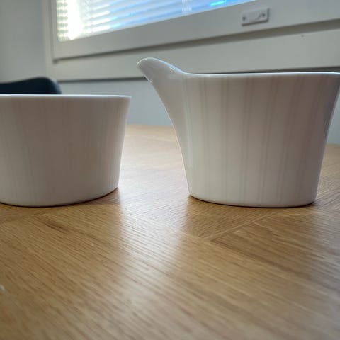 Arabia Lumi sarjan kermakko ja sokerikko valkoista posliinia. Käyttämättömät, olleet vain kaapissa pölyttymässä.