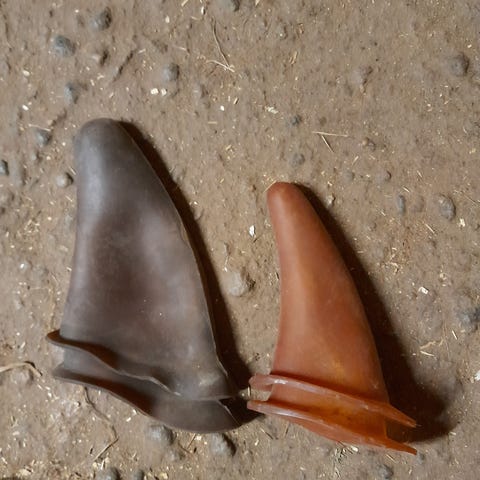 Neopreenihuput, leukaremmi korvattu nahkaremmillä ja soljella. 5€