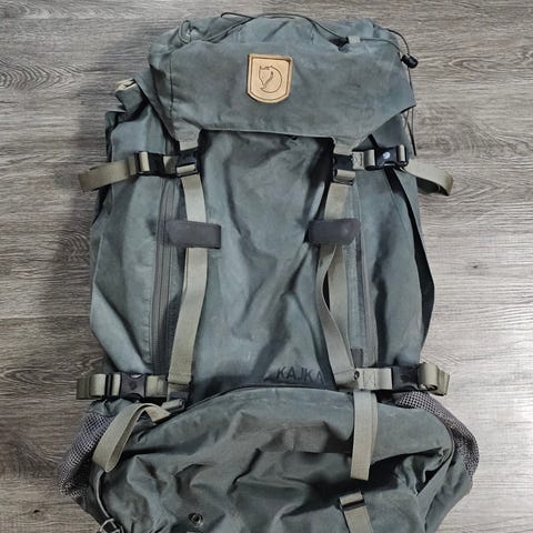Uutena 2018 ostettu Fjällräven kajka 85. Ollut vuosittain 1-2 vaelluksella käytössä. Yksi sauma vahvistettu suutarilla