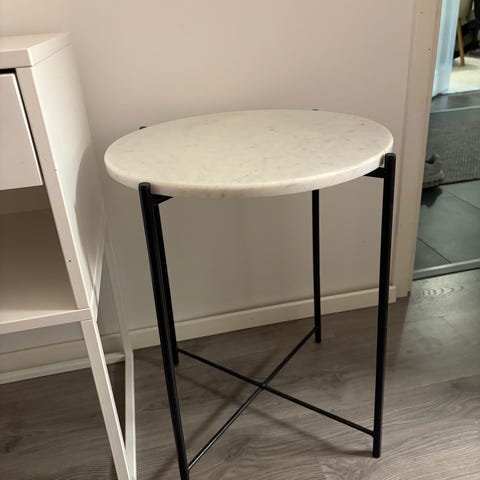 Yöpöytänä toiminut Jyskin sivupöytä, ei käytönjälkiä.