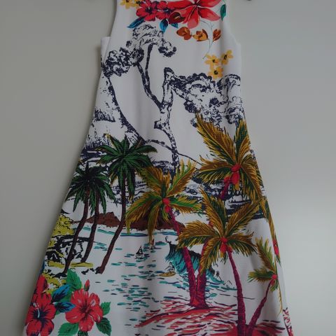 Desigual naisten kesämekko koossa S. Mekko on viskoosi (elastaania). 3/4-pituiset hihat, kiinniommeltu kietaisumalli vyöllä. Helma on A-linjainen ja pituus noin polven mittainen. Naisellinen kaunis malli.