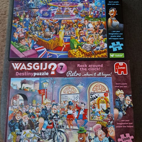 Wasgij palapeleissä yhdestä voi saada monta erillaista kuvaa tekijäst riippuen, (takakannesta kuva jotta saa ideasta kiinni) ja Clementoni palapelit taas hohtavat pimeässä, lapset tykkää.