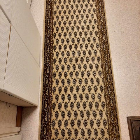 Sopii erityisesti käytäville ja kapeisiin tiloihin, kuten eteiseen tai keittiön käytäväosuuteen. Ei ole pesty, ostaja saa tehdä hankipesun. Tuntuu olevan villaa ja arvelisin käsinkudotuksi. Koko ilman hapsuja. Huoneistossa ei lemmikkieläimiä eikä kukaan tupakoi.