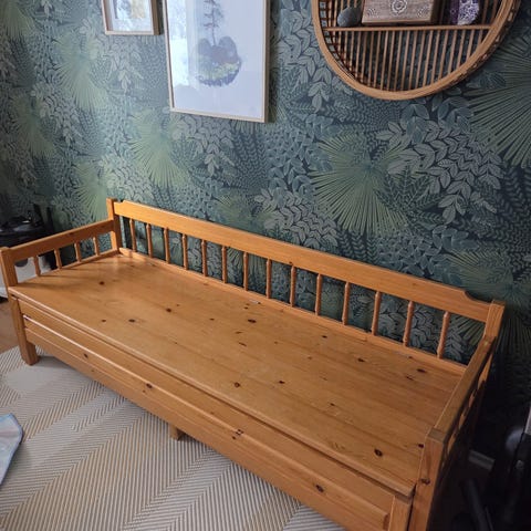 Retro Puusohva raidallisilla istuin- ja selkätyynyillä