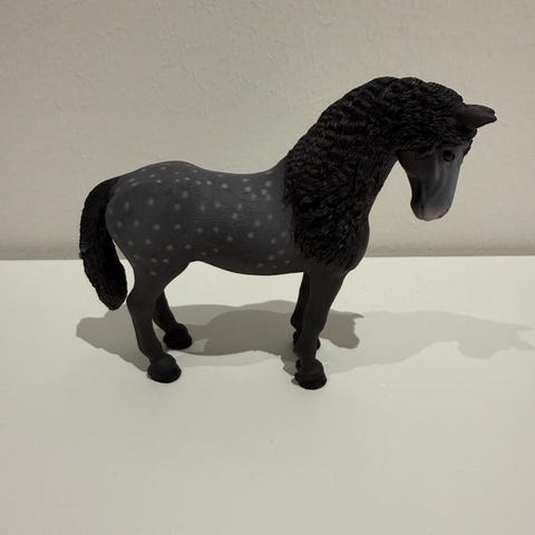Schleich hevosfiguuri. Ruskea hevonen vaalealla harjalla ja hännällä sekä valkoisilla sukilla jaloissa. Muovinen lelufiguuri sopii hevoshahmojen keräilyyn ja lasten leikkeihin.