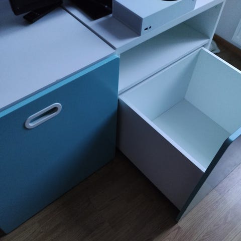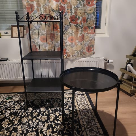 Kaluste on tarkoitettu nojaamaan seinää vasten tai kiinnittämään, koska siinä on vain 3 jalkaa.