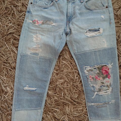 Leveälahkeiset vajaamittaiset farkut koko S/M