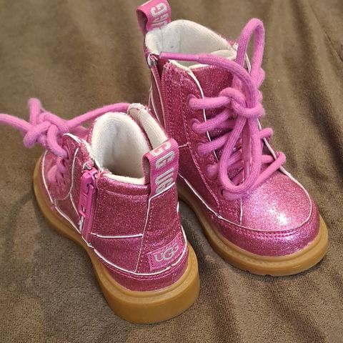 UGG lasten talvikengät. Kengissä on lämmin pehmeä vuori ja kumipohja. Koko 22, mutta meidän 22 jalkaan nämä ei kyllä mahtuu, tiukka varsi. Lähes käyttämättömät.
