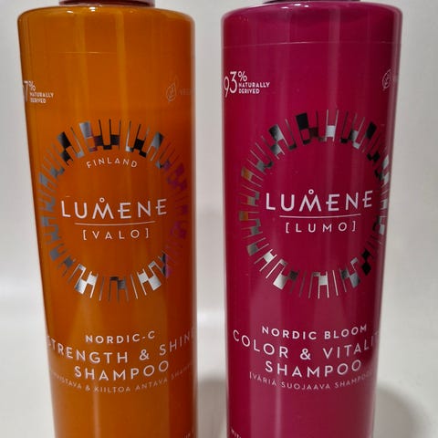 Lumene Color & Vitality shampoo ja hoitoaine sekä Cien Dry kuivashampoot ruskea. Paketissa on kaksi Lumene -sarjan hiustuotetta vaaleanpunaisissa pulloissa sekä kaksi Cien Dry kuivashampoota ruskeissa spraypulloissa. Tuotteet on tarkoitettu hiusten pesuun, hoitoon ja raikastamiseen pesukertojen välillä. Soveltuvat yleiseen hiustenhoitoon ja muotoilun tukemiseen. Tarkemmat käyttöohjeet ja ainesosaluettelot löytyvät pakkauksista.