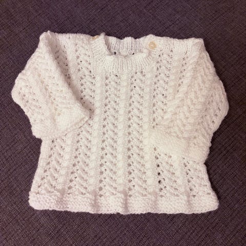Itse tehty vauvan neulepaita koko 62 valkoinen puuvilla unisex