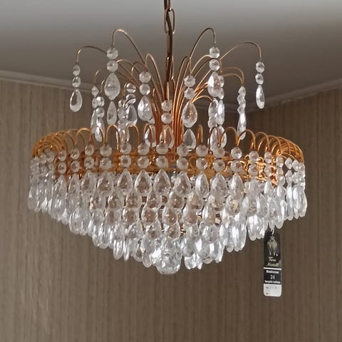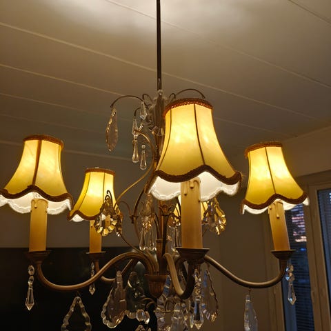 Myydään kuvan toimiva kattokruunu. Kaikki kristallit löytyvät ja ovat nyt paikallaan.