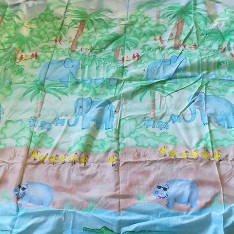 2 kpl. 145cm x 250cm verhot. Kankaassa on valkoisella pohjalla monivärinen kasvi- ja lintukuosi.