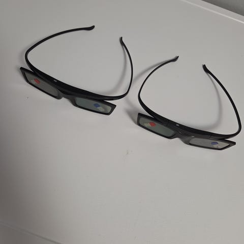Sony 3D-aktiivilasit televisiolle tai projektorille. Lasit ovat mustat ja kehys on muovia. Sopivat 3D-kuvan katseluun yhteensopivien Sony-laitteiden kanssa. Kuvissa useampi samanlainen lasipari, joissa suorakulmainen kehys ja tummennetut linssit. Kaksi ehjää. Hinta on kaikki yhteensä.
