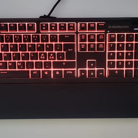 SteelSeries Apex -näppäimistö, väri musta. Johdollinen täysikokoinen näppäimistö rannetuellla. Sopii yleiskäyttöön tietokoneen kanssa, kuten työskentelyyn ja pelaamiseen. Lojunut varastossa muutaman vuoden. Käyttökerrat taisi jäädä yhden käden sormilla laskettaviksi.