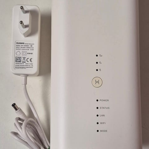 Kuvanmukainen Huawein reititin 4G modeemi ja 12V alkuperäinen virtalähde.