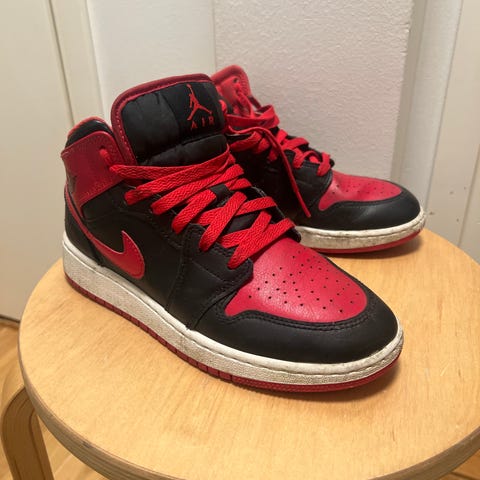 Nike Air Jordan lasten tennarit, koko 38,5. Väri musta ja harmaa, punaisia yksityiskohtia. Korkeavartinen malli nauhakiinnityksellä. Unisex-malli, sopii sekä tytöille että pojille. Soveltuu arkikäyttöön ja vapaa-aikaan.