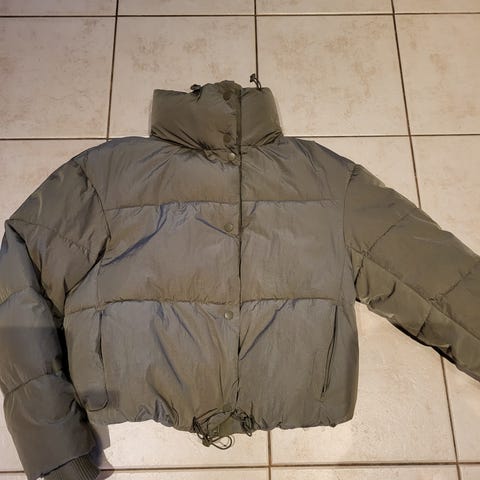Zara Basic naisten toppatakki koossa S. Beige, tikattu malli, jossa on huppu tekoturkisreunuksella. Edessä vetoketju- ja painonappikiinnitys sekä vetoketjulliset taskut. Takki on vuoritettu ja sopii viileämpiin säihin ulkokäyttöön.