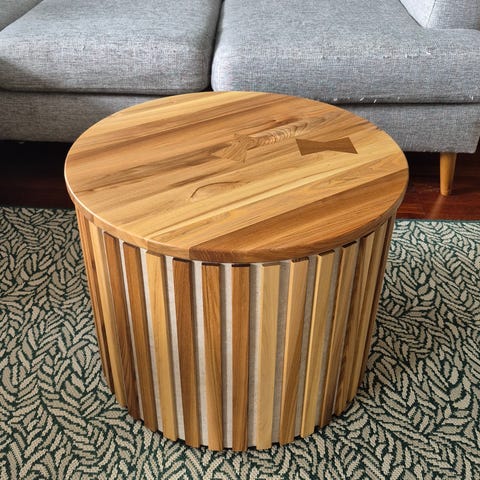 Myydään tyylikäs ja tukeva pyöreä sivu-/sohvapöytä.