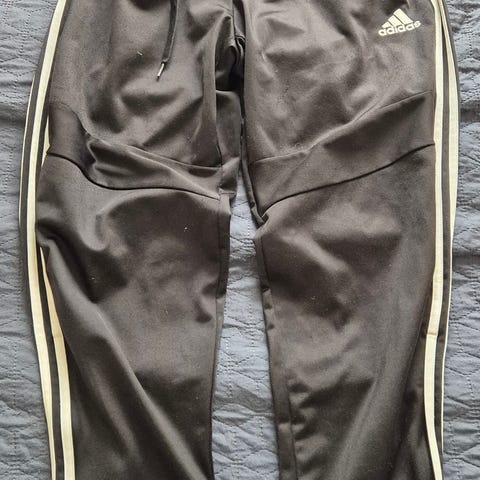 Adidas verkkarit miehille/ unisex, koko S. Monivärinen malli, jossa tummansininen pohjaväri ja tehosteväreinä sinistä, valkoista ja punaista lahkeissa.