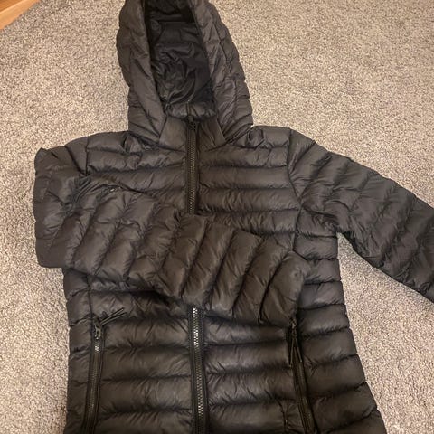 Hyvässä kunnossa oleva Everest lasten kevyttoppatakki, koko 146-152, unisex-malli. Vihreä, tikattu takki, jossa irrotettava huppu ja vetoketjukiinnitys edessä. Sivussa vetoketjulliset taskut. Hupun toisen puolen velcrokiinnitys kaulan kohdalla irronnut, mutta se ei vaikuta takin käyttöön mitenkään.