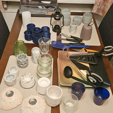 Kahvat ovat hyvässä kunnossa ja terät ovat ehjät. Veitset ovat käyttökelpoisia, mutta eivät kovin teräviä, joten teroitus olisi hyödyllistä. Vain nouto :)